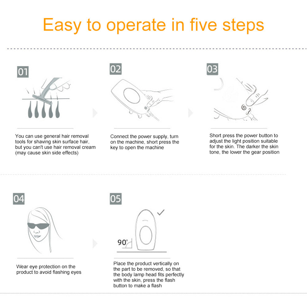 بخلاف طرق إزالة الشعر الأخرى، كالشمع أو النتف، فإن استخدام جهاز إزالة الشعر بالليزر لدينا غير مؤلم. تتيح تقنية IPL اللطيفة علاجًا مريحًا دون أي شد أو آثار جانبية مزعجة. يمكن للنساء الاسترخاء والاستمتاع بإزالة الشعر دون القلق بشأن الألم أو الجروح.